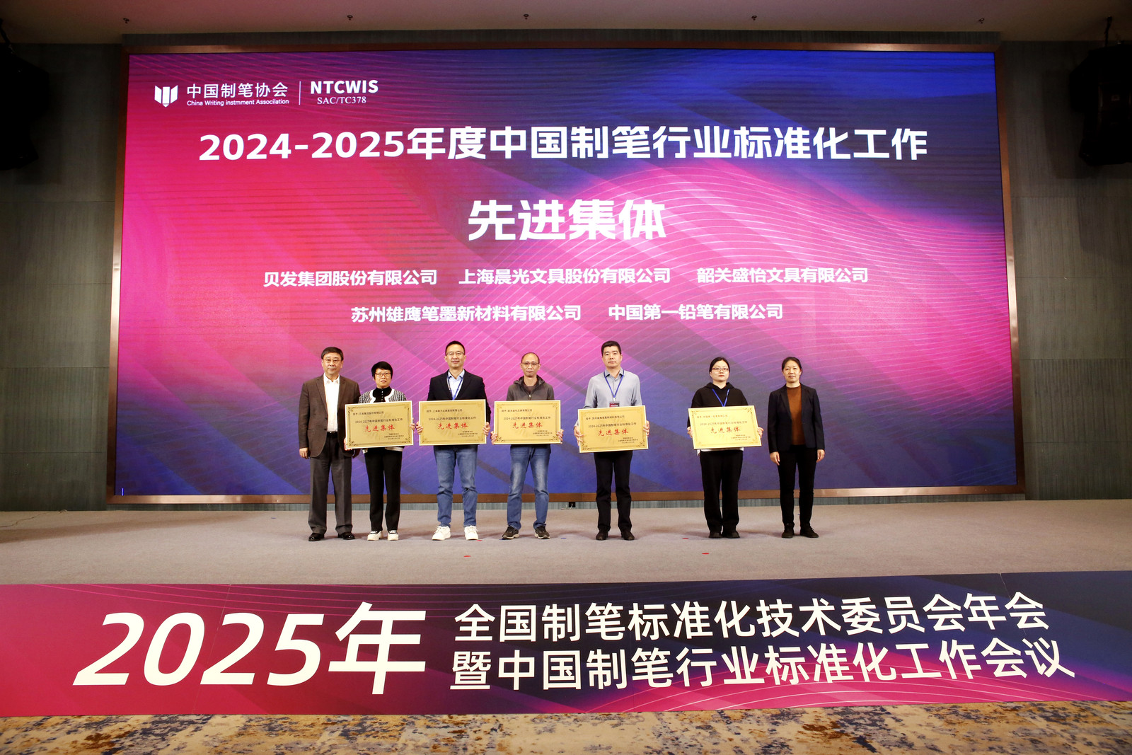 發(fā)布日期:2025-11-18近日,2025年全國制筆標(biāo)準(zhǔn)化技術(shù)委員會年會暨中國制筆行業(yè)標(biāo)準(zhǔn)化工作會議在浙江湖州召開。會上,上海晨光文具股份有限公司憑借在標(biāo)準(zhǔn)化建設(shè)方面的持續(xù)深耕與突出貢獻,被授予 “2024-2025年度中國制筆行業(yè)標(biāo)準(zhǔn)化工作先進集體” 稱號,彰顯了行業(yè)對其標(biāo)準(zhǔn)化工作的權(quán)威認(rèn)可,也體現(xiàn)了晨光作為領(lǐng)軍企業(yè)在推動產(chǎn)業(yè)規(guī)范發(fā)展中的示范作用。